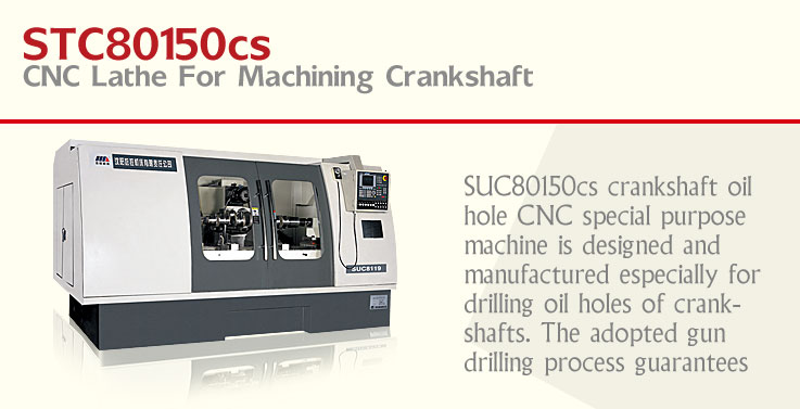 Main driving system adopts asynchronous motors with frequency adjusters. Headstock speed is controlled by hydraulic system. CNC system is FANUC0i-mate. X-axis adopts linear guide-way with scale. STC80150cs is an ideal equipnent for machining various crankshaft bearings. With reatures of high repeat positioning accuracy, stable performance, high reliability and high machining efficiency etc.